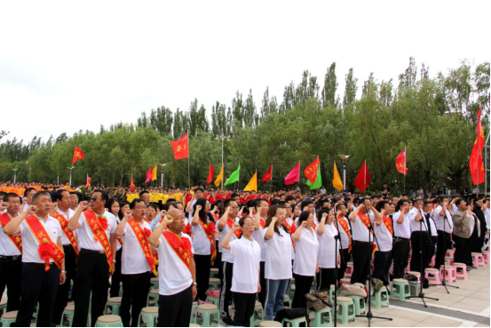 刘前贵书记带领全体党员在党旗下,重温入党誓词。
