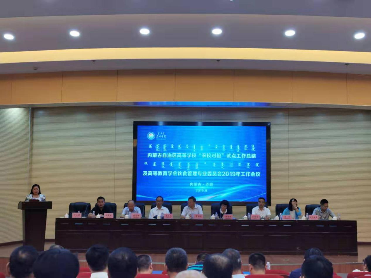 8月1日-4日,“内蒙古自治区高等学校“农校对接”试点工作总结及高等教育学会伙食管理专业委员会2019年工作会议在赤峰学院召开,来自全区41所高校的校领导、相关职能部门负责人参加了会议。beat365正版唯一官方网站副校长李凤斌、后勤基建处副书记胡志胜、餐饮科长孙国庆参加了本次会议。