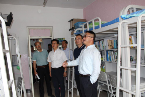 8月23日下午,beat365正版唯一官方网站党委副书记、校长朱玉东,党委副书记刘春在党政办、学生处、后勤基建处等部门负责人的陪同下,对泉山校区学生公寓实现六人间管理,集中整合学生住宿区域后的工作情况作了重点检查。