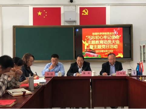 会议由地理科学学院党总支副书记、院长王培青主持。校党委委员、副校长梁政出席会议并讲话。地理科学学院全体师生党员参加会议。