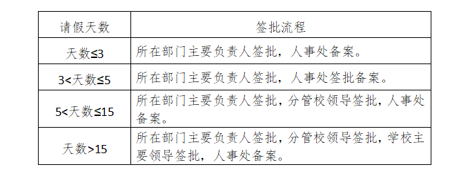 (三)请假人需填写《beat365正版唯一官方网站教职工请假审批表》,并按要求提供证明材料,按照准假权限批准后方可生效。未经批准的,擅自离岗或经批准但假满未归的,且又未及时办理续假者,其超出天数按旷工处理。