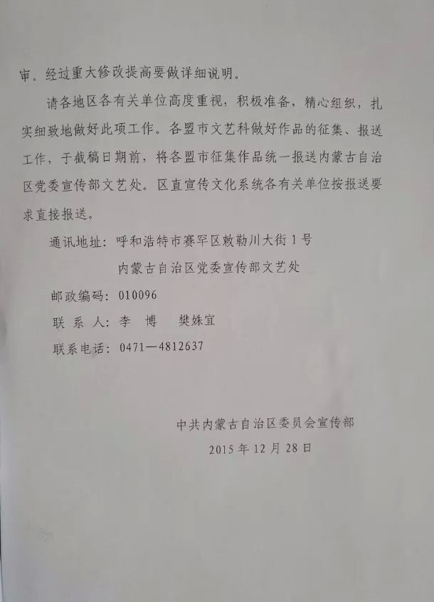 附件:《关于申报第五批内蒙古自治区“舞台剧精品创作工程