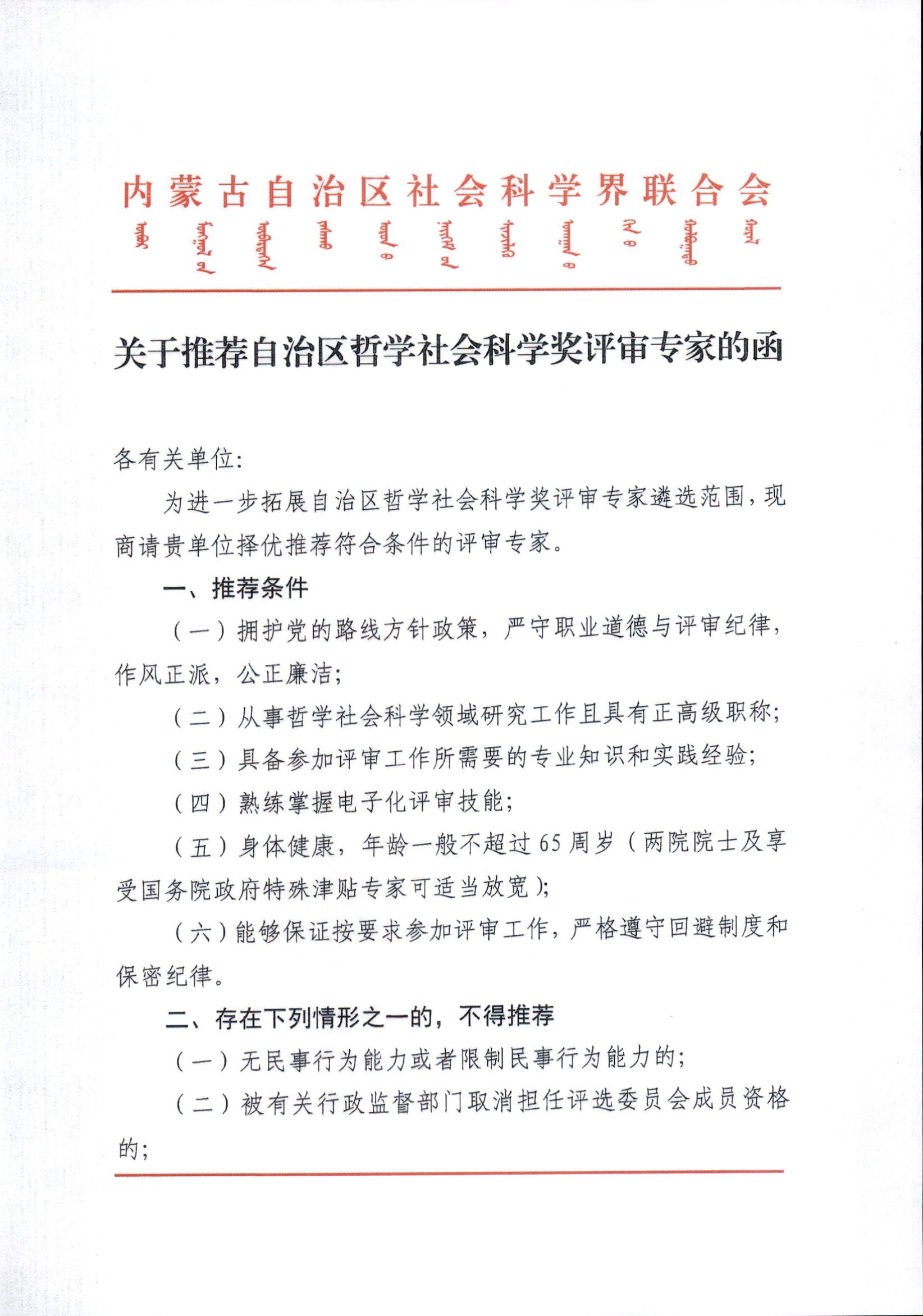 为进一步拓展自治区哲学社会科学奖评审专家遴选范围,现择优推荐符合条件的评审专家。