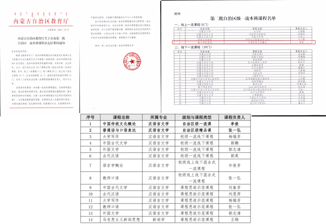 近三年,学院牵头申报并获批国家语言文字推广基地、内蒙古自治区国家通用语言文字推广基地。专业积淀深厚,拥有自治区一流课程1门,自治区精品课程1门,校级一流课程6门,校级课程思政示范课6门。教师精研善教,建有中国古代文学课程群教学、汉语言文学专业创新教学、新闻学核心课程教学等5个教学团队。学院研创并举,设立乌兰察布市北疆文化创作基地——文学名家工作室、创意写作中心、国学研究与传播中心等5个创作和科研平台。