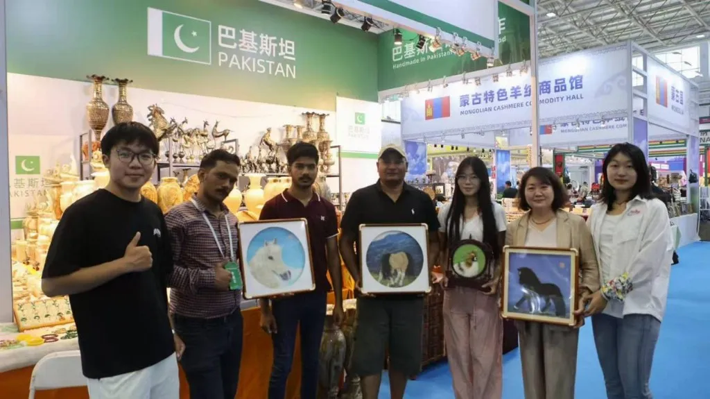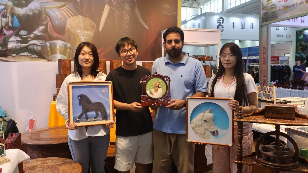 团队负责人曹晓旭分享道:察哈尔毛绣是承载民族情感的文化符号。当外国友人对毛绣表现出浓厚兴趣与赞赏时,我们更加坚定了让这项非遗走出内蒙古、走向更广阔天地的决心。
