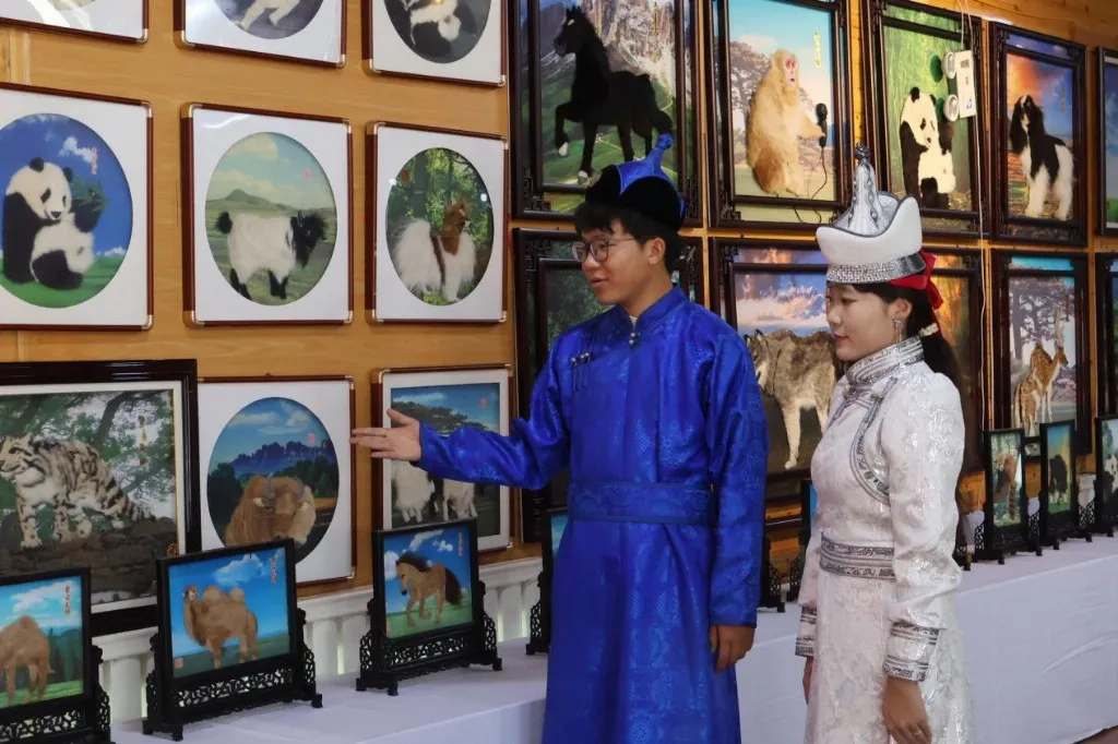 搭建文化交流桥梁:在内蒙古自治区文化博览会、中蒙博览会上,以毛绣为媒介,推动非遗文化交流。