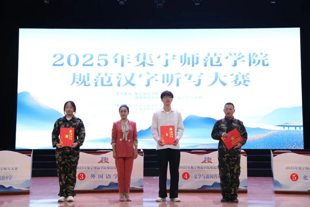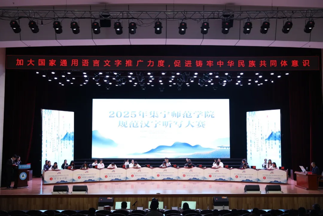 规范汉字听写大赛邀请内蒙古语言学会会员、文学与新闻传播学院韩丽国副教授担任主考官;文学与新闻传播学院院长郭鹏教授、语言文字专家李秀林教授、中国硬笔书法协会会员、国家级普通话水平测试员郝青山老师担任评委。文学与新闻传播学院全体师生及泉山校区各学院师生代表共同观看比赛。