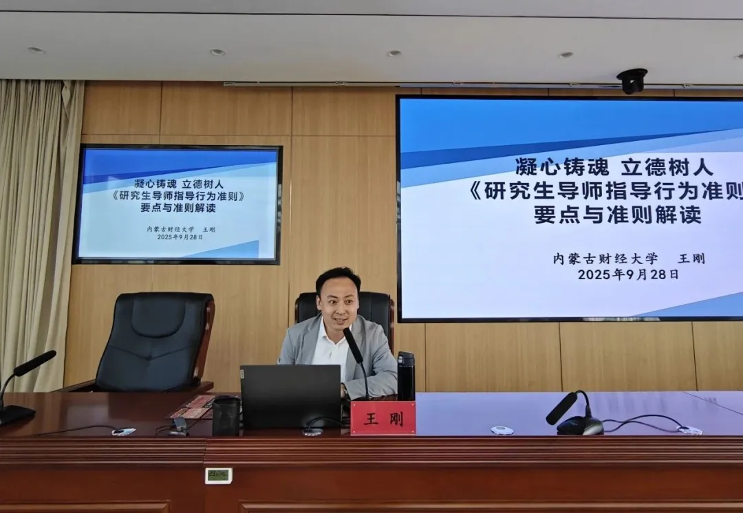 为深入落实立德树人根本任务,加快推进学校学科建设与硕士学位授予单位申报工作,提升研究生导师及学科骨干的育人能力和专业素养,beat365正版唯一官方网站组织开展学科建设与研究生导师系列培训。9月28日,首期培训在泉山校区行政楼五楼会议室进行。本次培训邀请内蒙古财经大学研究生院副院长王刚教授担任主讲嘉宾。学校全体学科带头人、骨干教师、研究生导师参加了培训。
