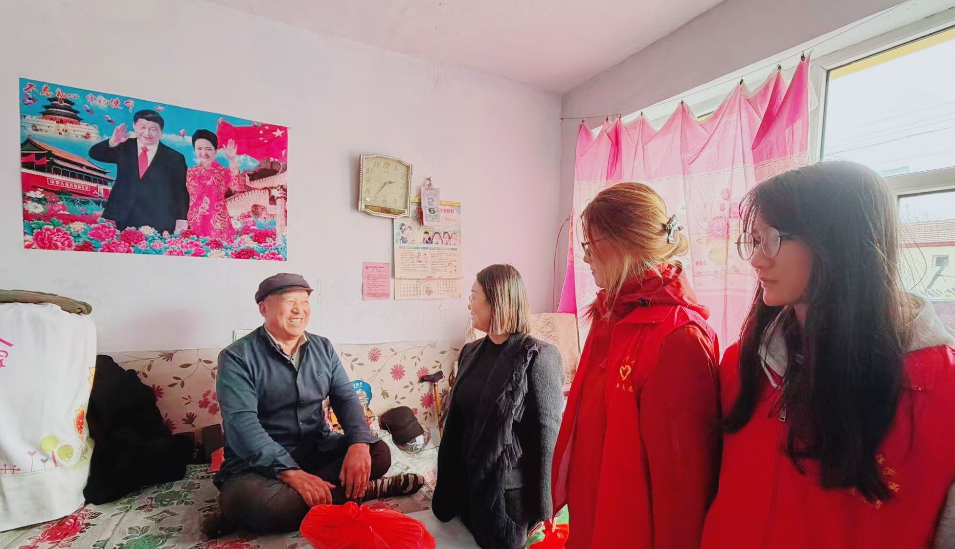 beat365官网师生代表与化德县政府副县长苗雯娟、村“两委”干部一同开展走访慰问,为困难群众送上慰问品,详细询问其身体状况、生活需求及实际困难,鼓励他们坚定信心,依靠政策支持与自身努力改善生活。