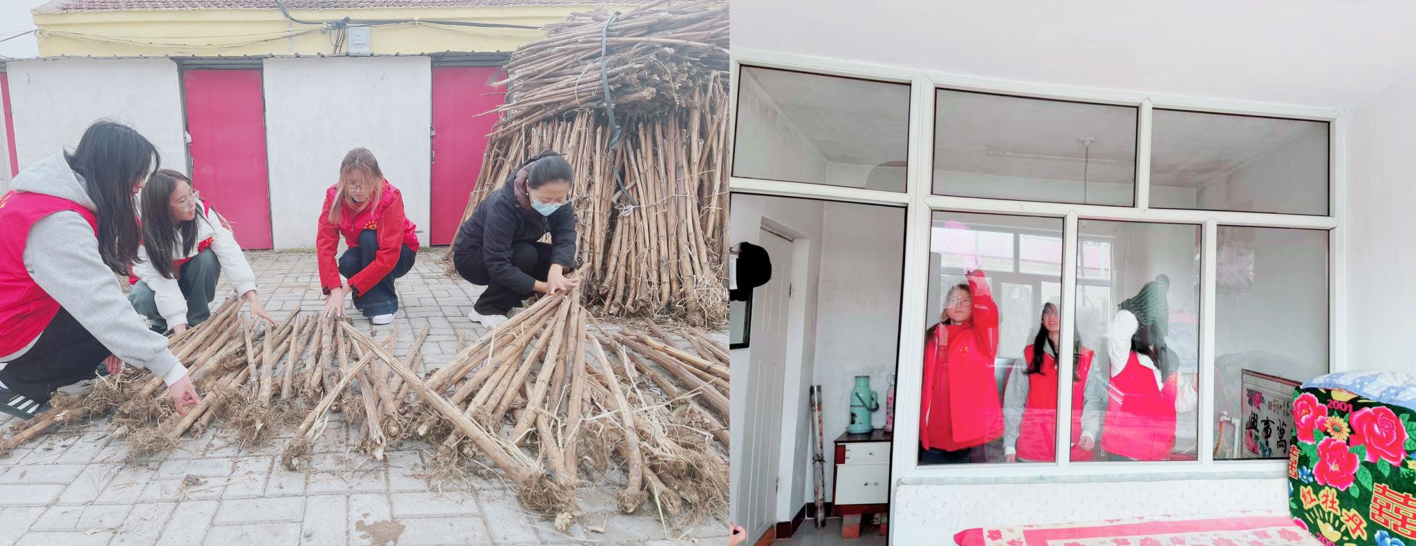 师生们在宣讲结束后迅速投入实干助农行动。大家兵分多路,分组走进独居老人与困难群众家中,主动承担农活、打扫庭院,用双手为村民排忧解难。