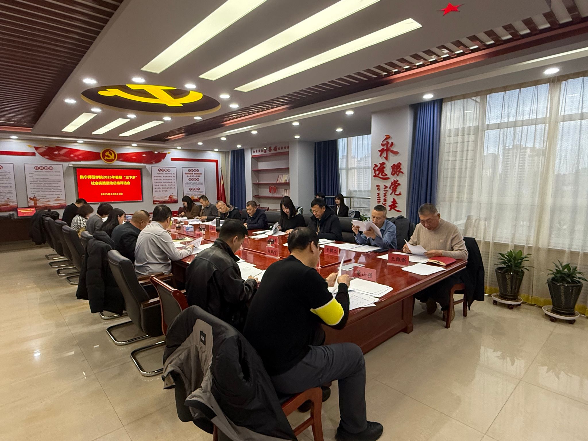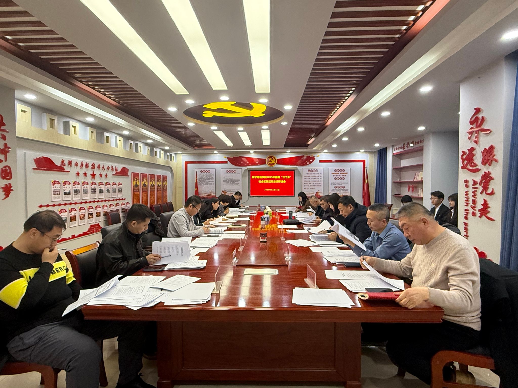 现场以2025年暑期“三下乡”社会实践的活动内容深度、实践筹备与实施成效、成果落地质量、引领教育价值等为核心评审维度,结合项目主题契合度、社会贡献度、团队执行力等关键指标进行了综合量化打分,就各学院推送的17个实践项目开展全面交流评议。