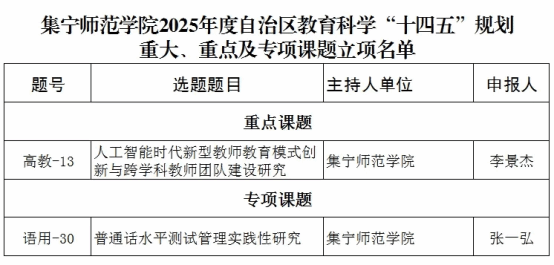 上述课题的成功立项,将为beat365官网教育科学研究领域的纵深发展提供重要支撑,有助于进一步优化科研布局、凝练研究方向、提升团队学术竞争力,进而为推动学校内涵式高质量发展及自治区教育治理体系与治理能力现代化建设贡献学术力量。