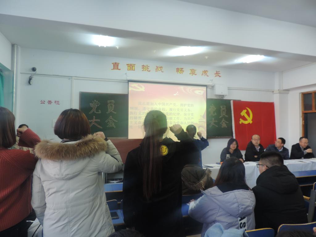 本次会议由党总支书记周关锁主持,大会共有四项议程。第一项议程是讨论发展预备党员,全体党员对是否同意其转为预备党员进行无记名投票,最终七名同学顺利发展为预备党员;第二项议程是三名预备党员转为正式党员的决议,三名同学分别就各自的学习、生活等各方面情况做出基本介绍,并都表达了各自想成为一名正式党员的期望。全体党员对是否同意其转为正式党员进行无记名投票,最终三名同学顺利转为了正式党员;第三项议程是新党员进行宣誓;第四项议程是由张伟老师宣读2017年重点培养对象名单;最后由周关锁书记作总结发言。大会在庄严的国际歌的歌声中圆满结束。