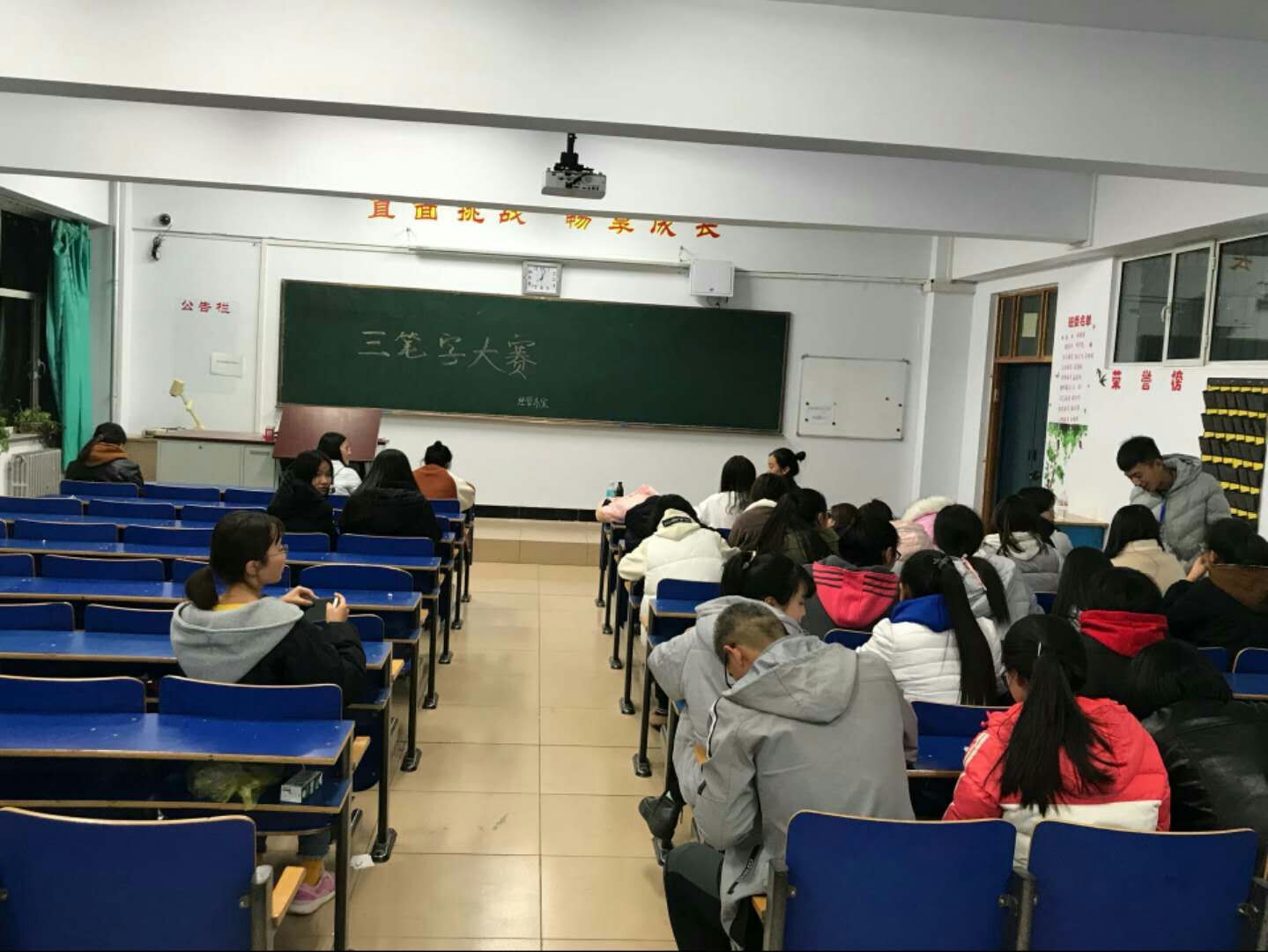 墨韵飞扬,妙笔生花。为庆祝党的十九大顺利召开、践行社会主义核心价值观、弘扬中华传统文化,2017年10月30日由经管系团总支主办的“墨缘杯”三笔字大赛在主教楼218成功举办。