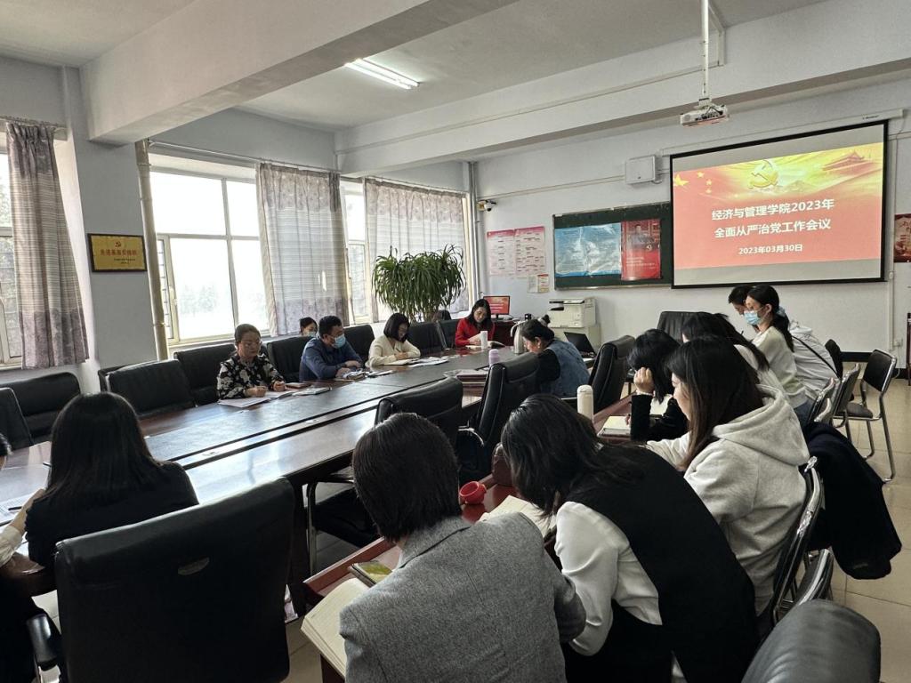 2023年3月30日,经济与管理学院党总支组织全体教师党员在主楼202会议室召开2023年度全面从严治党工作会议。