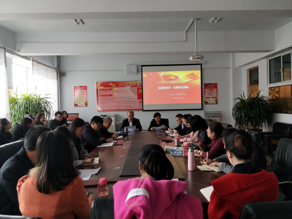 根据乌兰察布市市委《关于组织开展“全国扶贫日”主题党日活动的通知》的要求,按照习近平总书记的扶贫战略部署,坚决打赢脱贫攻坚战,确保到2020年我国现行标准下农村贫困人口实现脱贫,贫困县全部摘帽,让贫困人口和贫困地区同全国一道进入全面小康社会,经济与管理学院全体党员于10月18日下午3点半在主教楼会议室202开展了“全国扶贫日”主题党日活动。