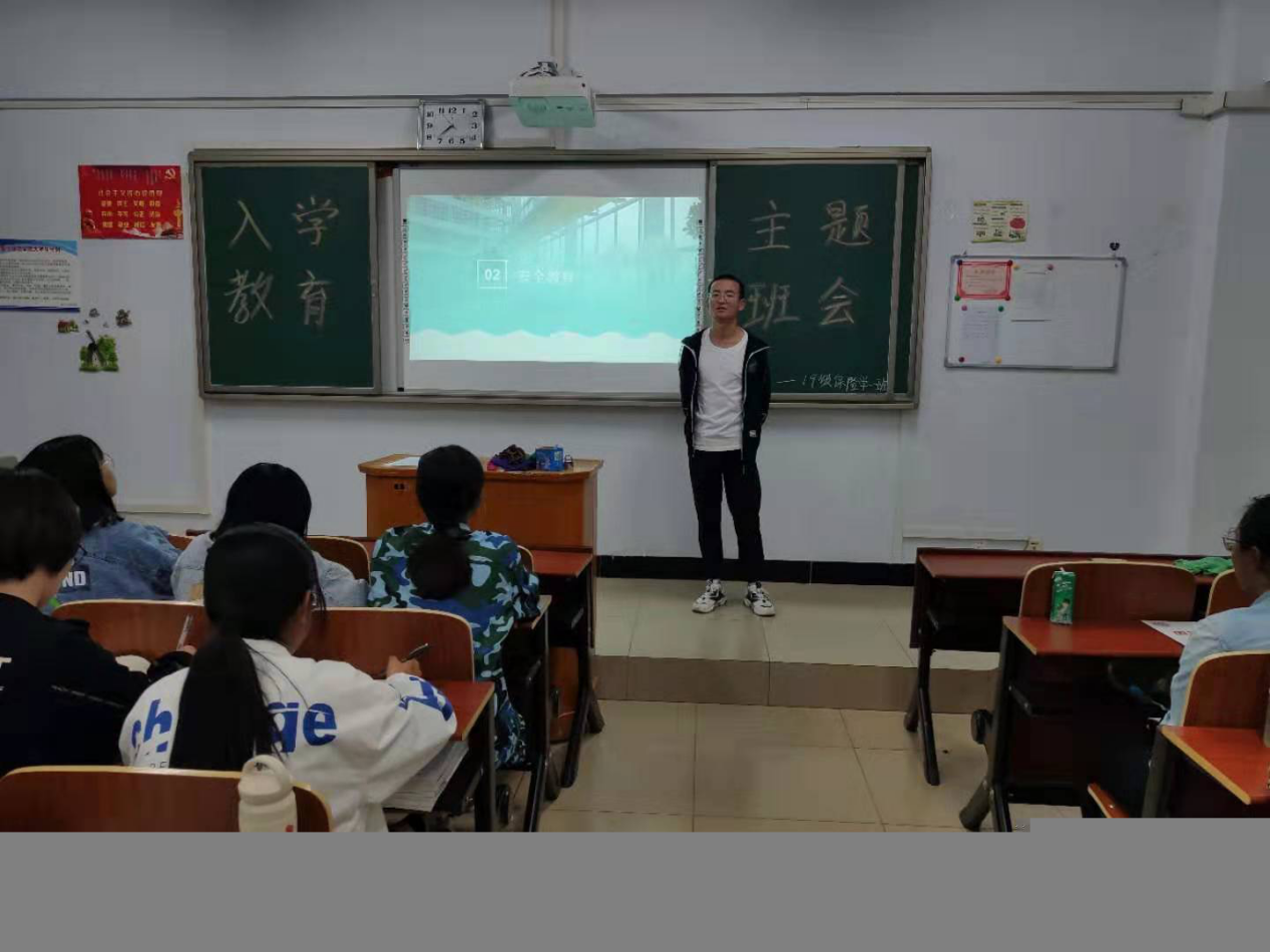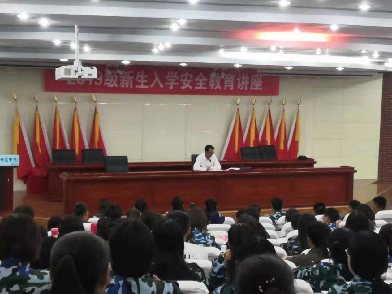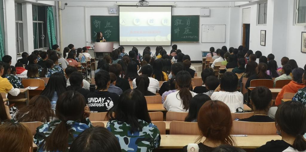 为使2019级新生了解大学学习及专业的特点和基本要求,教育和引导新生尽快适应大学生活,激发新生成长成才的主动性和积极性,使其尽快转变角色,以昂扬的精神面貌迎接全新的大学生活,我院于9月3日至9月10日,分别在图书馆报告厅、主教楼217教室,对大一新生进行了安全教育讲座、院史院情介绍、学籍学位教育、学校规章制度学习及成长分享会、党团建设讲解与《开学第一课》主题班会等一系列新生入学教育活动,前保卫处处长谢军老师、经济与管理学院副院长么秀杰老师、学工办主任邢彩霞、代理团总支书记兼辅导员刘慧玲老师及全体班主任参加了入学教育活动。