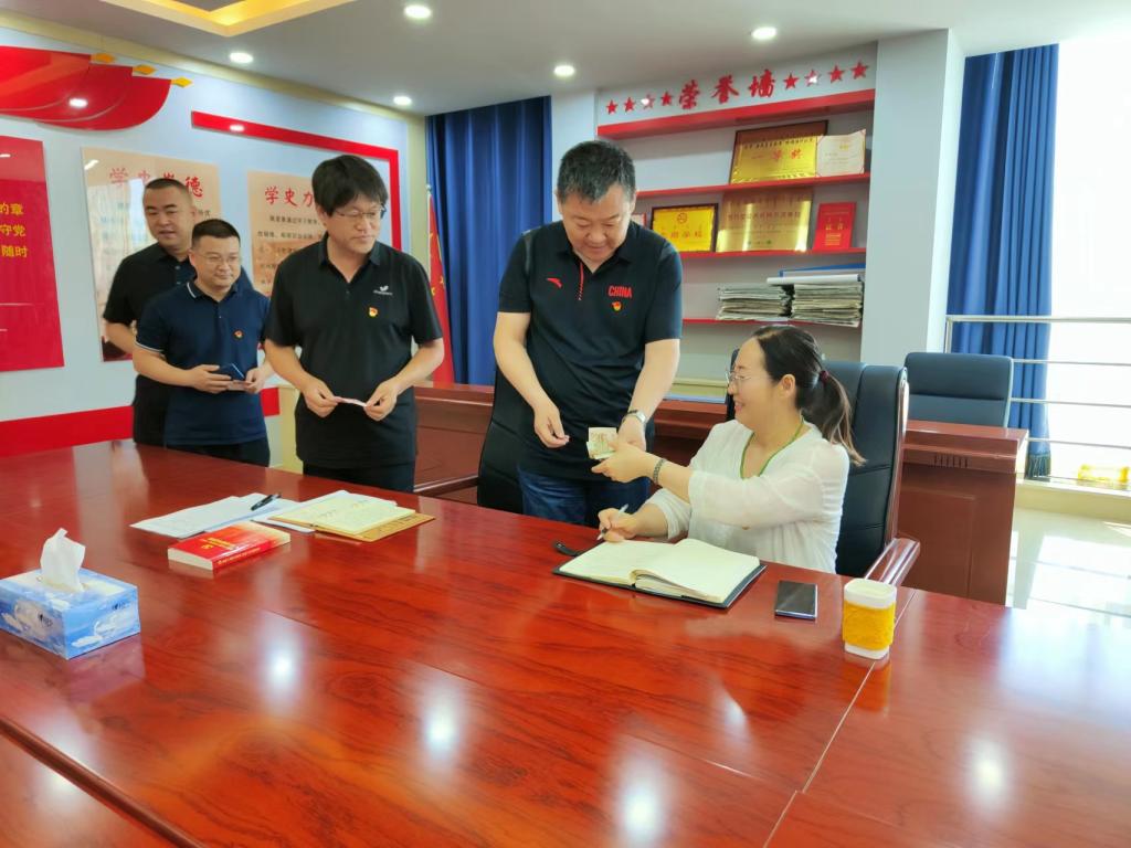 活动最后,全体党员干部集中缴纳了7月份党费,主题党日活动在《没有共产党就没有新中国》的歌声中结束。