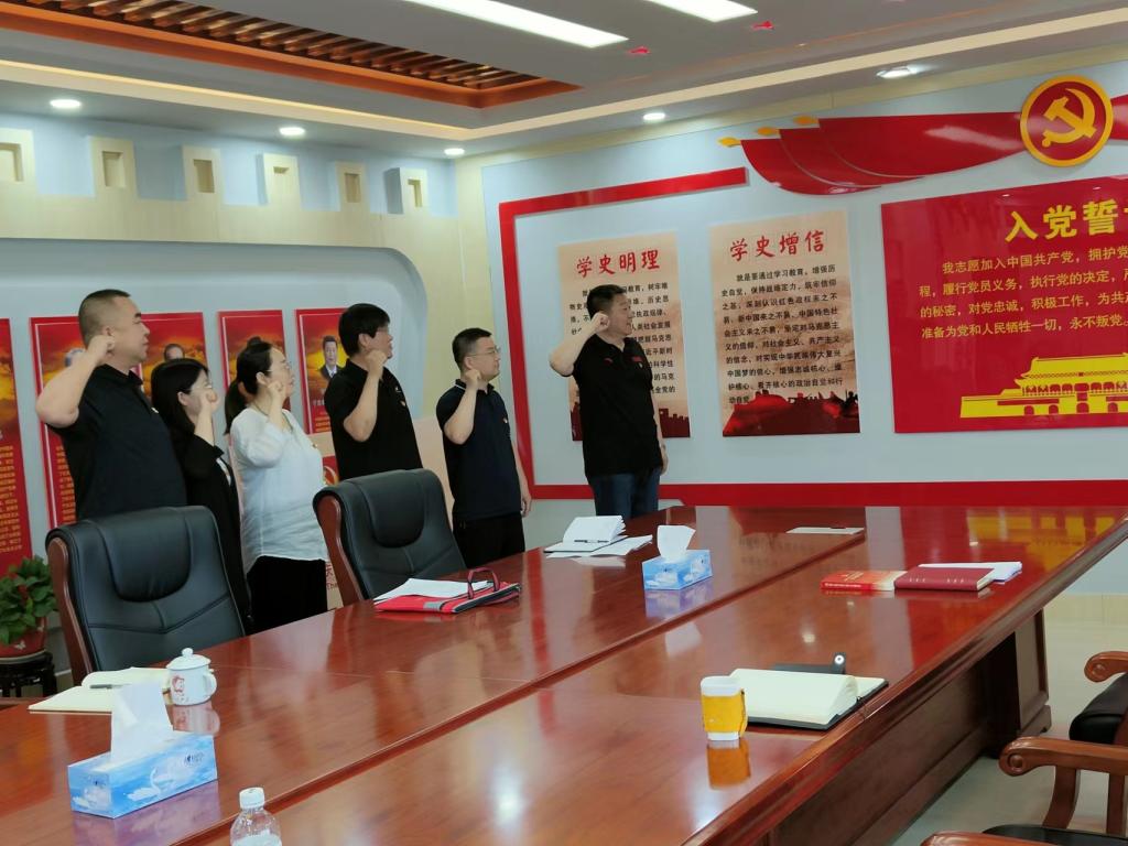 为喜迎二十大胜利召开,庆祝中国共产党成立101周年,7月1日上午,纪委党支部开展了“永远跟党走 奋进新征程”主题党日活动。通过开展“重温一次入党誓词、学习《中国共产党章程》、集中缴纳党费、合唱《没有共产党就没有新中国》”活动,引导全体党员干部在学思践悟中激发信仰、启迪智慧、汲取力量,争做对党忠诚、敢于担当的优秀共产党员,不断提升党组织的号召力、凝聚力和战斗力。