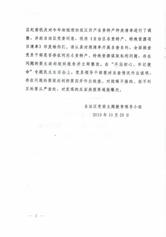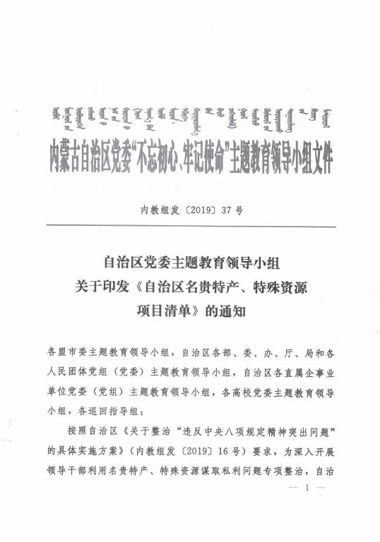 关于转发《自治区党委主题教育领导小组关于印发< 自治区名贵特产、特殊资源项目清单>的通知》的通知