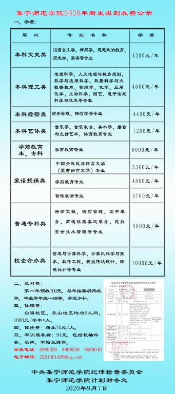 beat365正版唯一官方网站2020年新生收费公示