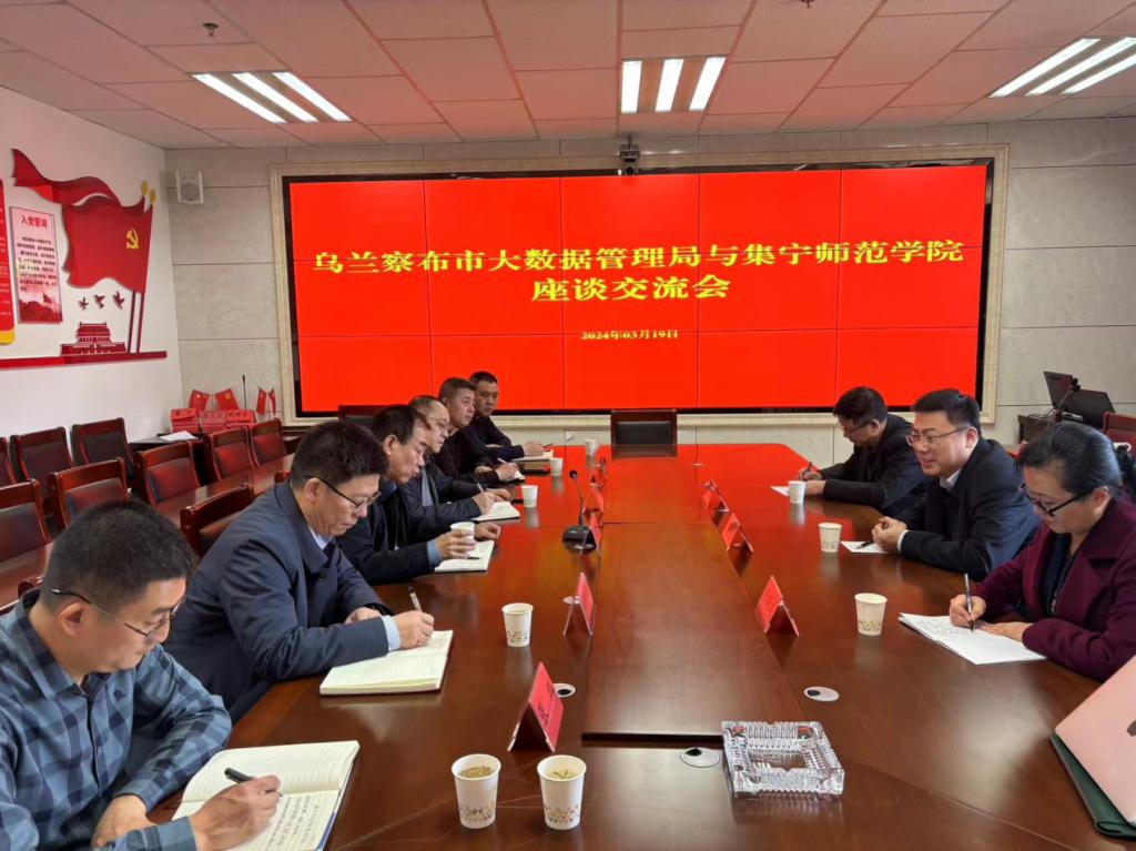 为促进大数据产业发展,加强校地合作,2024年3月19日下午,beat365正版唯一官方网站党委委员、副校长拓俊杰一行赴乌兰察布市大数据管理局以及数据中心企业进行了参观调研,并举行了座谈交流,以了解该地区算力发展情况。会议就如何利用算力助力数字经济发展,实现学校、政府、企业产学研结合等议题进行了深入讨论。本次座谈会的与会人员有乌兰察布市大数据管理局局长仝晓林、副局长吕佐鹏、刘焕及各科科长,beat365正版唯一官方网站随行人员有计算机与大数据学院党总支书记于艳东、院长邢德胜、教师田箫。