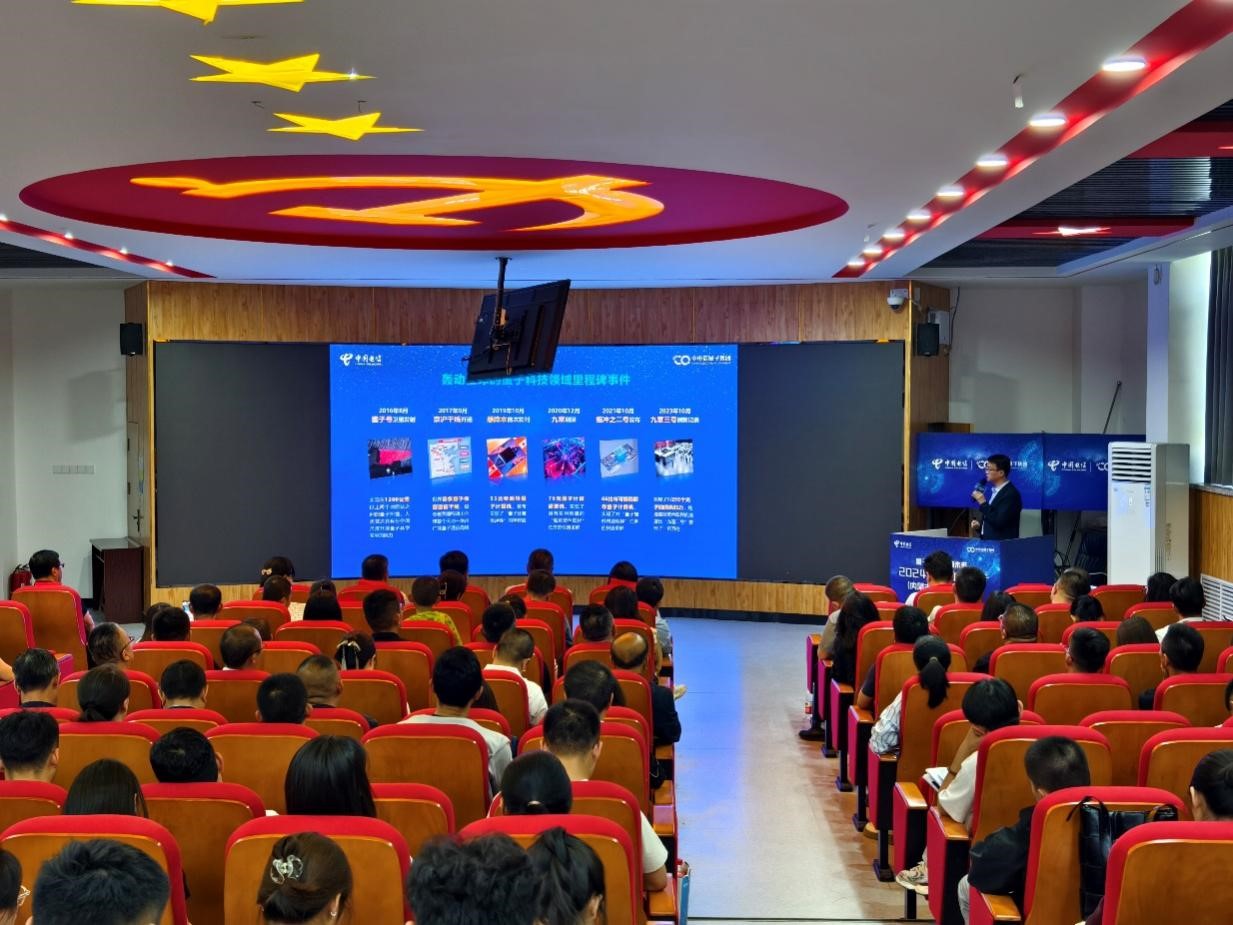 启动仪式上,中电信量子信息科技集团有限公司市场部总经理叶波和中国科学院大学专任教师、中国科学院软件研究所副研究员应圣钢,分别进行了主题为《量子产业布局,服务国家战略》和《量子计算对数字经济的影响》两场主题讲座,深入解析了量子科学技术在国家战略布局和数字经济中的应用和影响。讲座结束后,全体人员共同参观了“科学探索”和“量子科技”的科技主题展览,进一步加深了对量子科技的理解和认识。
