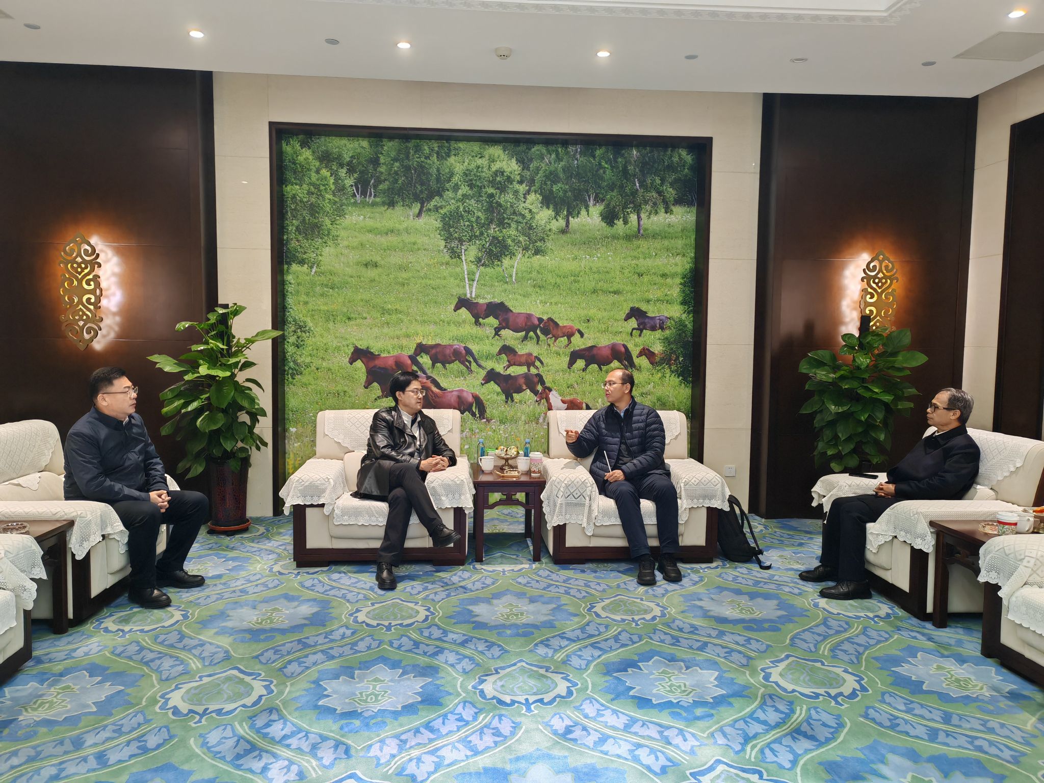 11月9日,beat365官网信息安全现代产业学院特邀国家杰出青年科学基金获得者、清华大学翟季冬教授到访乌兰察布市开展算力赋能教育专题讲座及乌兰察布算力企业调研座谈活动。讲座前,校党委副书记、校长张宝成,党委委员、副校长拓俊杰与翟季冬教授一行会谈。