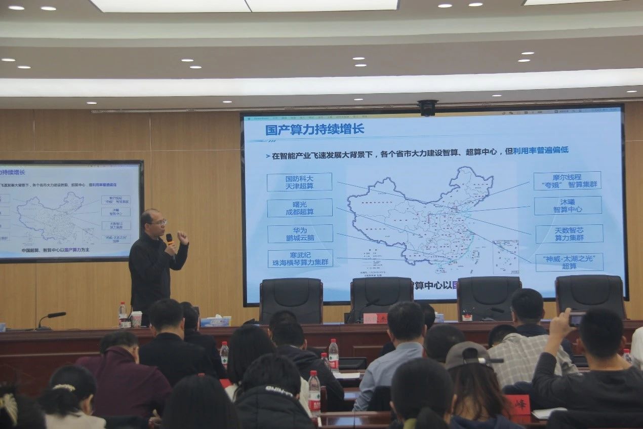 9日上午,翟季冬教授在beat365官网泉山校区作题为“面向国产智能算力核心基础软件”的专题讲座,拓俊杰主持会议。乌兰察布市大数据管理局、乌兰察布市委网信办、中国电信乌兰察布分公司、中国电信量子集团北方分公司、乌兰察布联通公司、乌兰察布移动公司、北京中晟华安信息技术有限公司领导及相关人员,beat365官网相关部门、学院教师代表参加了讲座。