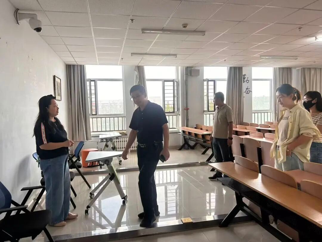 为保障新生顺利入学,邢德胜院长、张培方副书记及李俊芳副院长带领学工办辅导员们对教室开展全面安全卫生检查工作。重点排查教室内用电线路、照明设备、门窗桌椅等设施安全隐患,同时对地面、墙面、课桌椅等进行深度清洁与消毒,确保教室环境安全整洁、设施运行正常,为学生营造良好的学习环境。