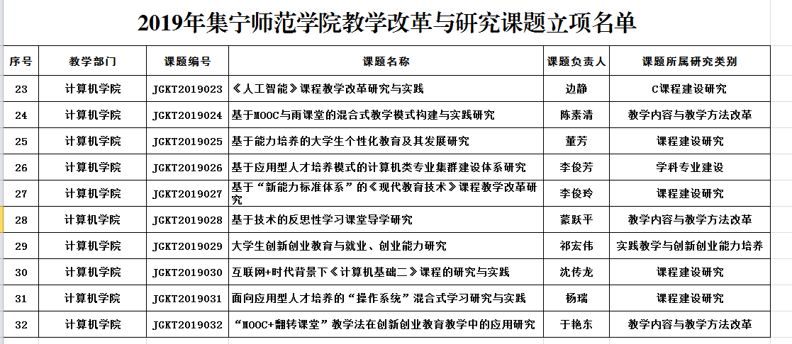 2019年beat365正版唯一官方网站计算机学院教学改革与研究课题立项名单