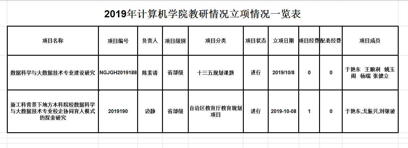 2019年度计算机学院教研立项情况一览表