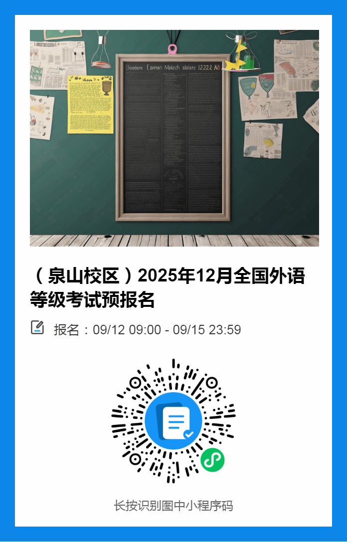 2025年下半年全国大学英语四、六级笔试(CET)将于12月13日举行。现将beat365官网大学英语四、六级考试预报名相关事宜通知如下: