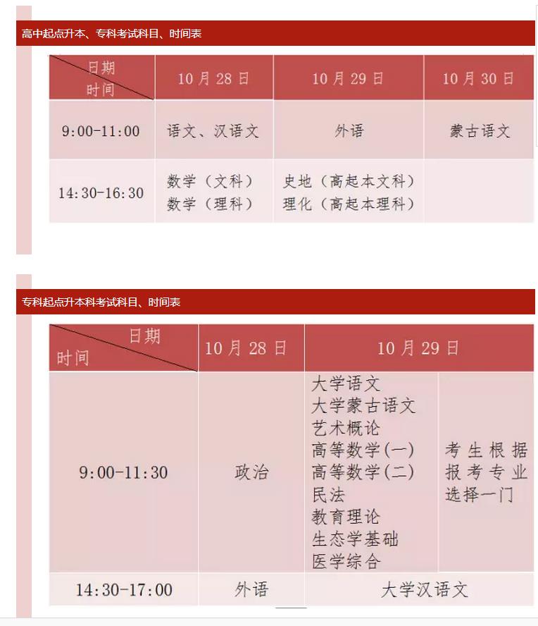 2017年成人高校招生考试科目与考试时间,不可不知