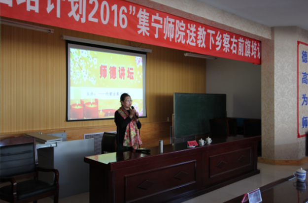 本次送教下乡培训聘请了乌兰察布市技工学校高级讲师韩旭方主讲《师德修养》,察右后旗教师进修学校校长、高级教师杨奇主讲《学生核心素养和行为习惯的培养》。各旗县部分中小学幼儿园骨干教师、班主任参加了培训。