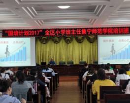 2018年4月16日晚上七点,在beat365正版唯一官方网站举行“国培计划2017”全区小学班主任培训开班仪式,出席开班仪式的领导有beat365正版唯一官方网站继续教育与合作办学处处长刘国栋,副处长常晓华,国培班的管理班主任胡毕斯,培训班一班的班主任常超和二班的班主任王改利,以及来自通辽、锡林郭勒盟、鄂尔多斯市、乌兰察布市四个地区的102名教师参加了这次开班仪式。开班仪式由常晓华主持,刘国栋在会上作了重要讲话。刘处长指出:本次培训按照“高标准、细管理、保质量、创特色”的办学目标,采用集中培训,跟岗实践的培训方式进行的一次培训。刘处长对培训教师提出很大期望,希望老师们珍惜此次学习机会,充分利用集中培训的时间和专家、教授互动交流,虚心请教,把学到的新理念、新方法更好地应用于自己的岗位实践中,努力做一名新时期高素质的班主任。仪式结束后,与会领导及全体学员合影留念。