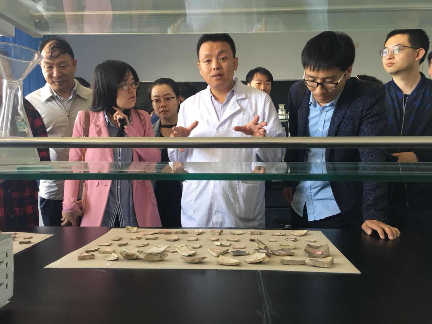 团队人员一行先后参观了重点实验室表征室、样品成列室,观看了改性后的矿土在造纸漂白、纸阻燃实验,加工后矿土在净水方面、化妆品方面的利用。