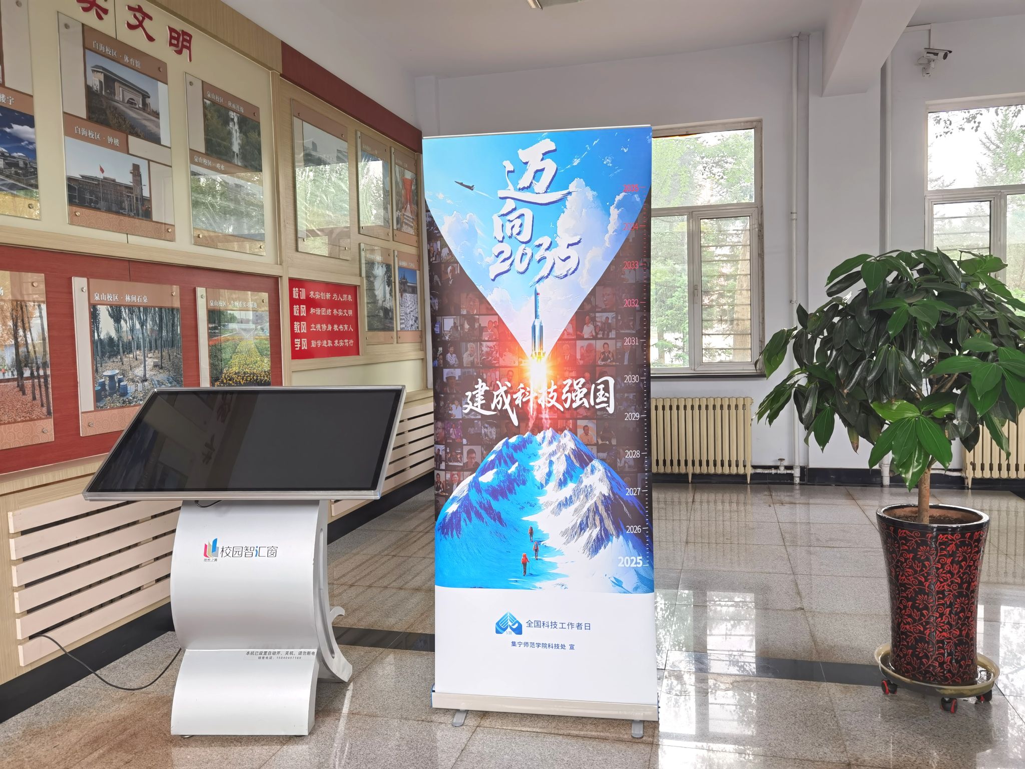 这些海报上,科学家们或深邃或质朴的话语,激励着每一位师生。从袁隆平的“中国人的饭碗,要牢牢地掌握在自己手里”,到屠呦呦的“祖国需要我,我义无反顾”,每一句都闪耀着智慧与奉献的光芒。而全国科技工作者日的宣传海报更是将节日氛围推向高潮,让师生们深刻感受到科技工作者的伟大精神。