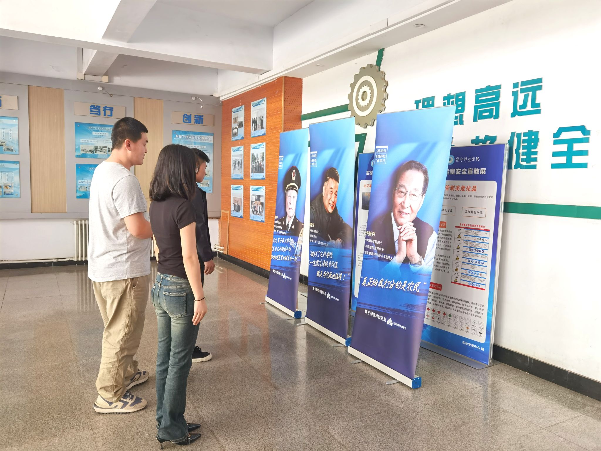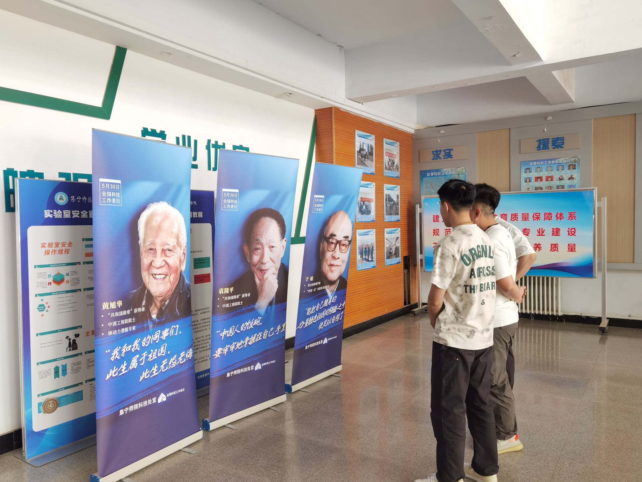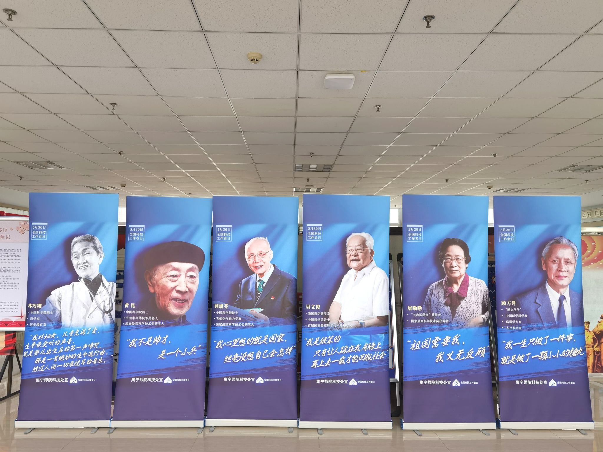 5 月 30 日,全国科技工作者日来临之际,beat365正版唯一官方网站科技处精心策划了一场别开生面的宣传活动。在校园的网络楼、主教楼、逸夫楼及行政楼,共摆放了十九副易拉宝海报,其中十八副展示了我国著名科学家及其经典语录,最后一副为全国科技工作者日的宣传海报。