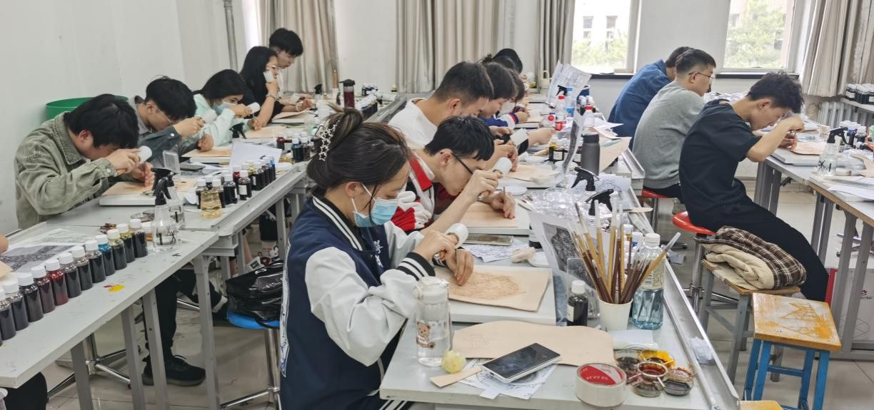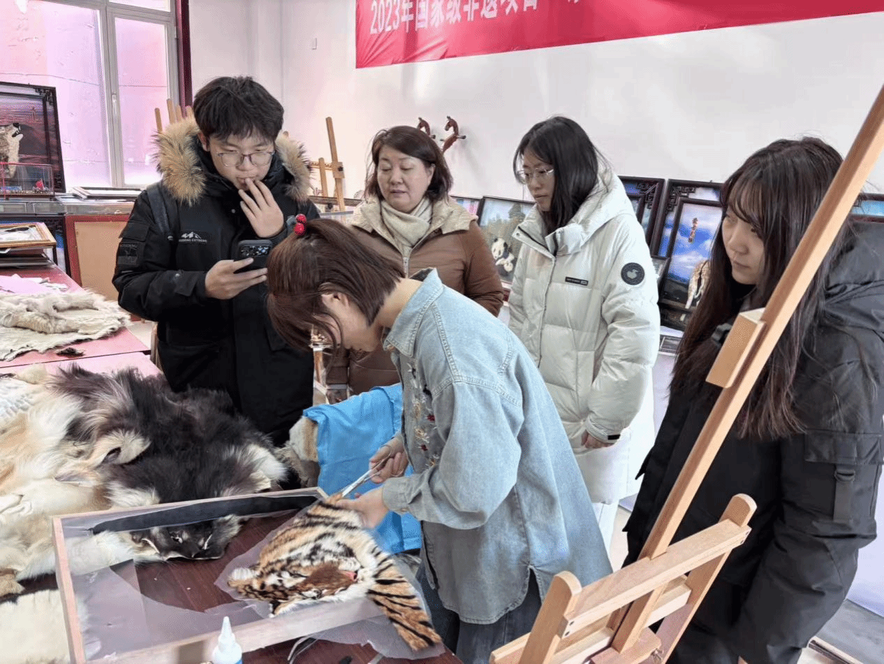 本方向探索非遗文化高校美术设计教育深度融合的路径与方法,将传统皮雕、剪纸、毛绣等非遗技艺融入课堂教学、实践课程与学生社团活动,开展“非遗进课堂”系列活动,培养兼具专业素养与非遗传承意识的复合型人才。同时,依托自治区级非遗传承人群研培项目,开展传承人研修培训,搭建非遗传承人与高校师生的交流平台,推动非遗技艺的代际传递。