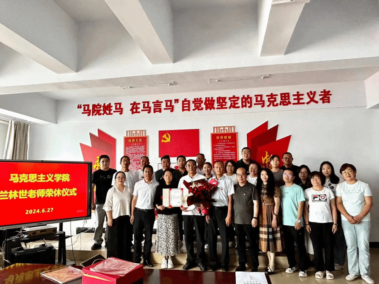 荣休仪式上,教师工作部(人事处)科长王祯琪宣读了关于兰林世老师的荣休决定,兰林世教师发表了荣休感言。马克思主义学院党总支副书记段文智、副院长郭永兴分别对兰林世老师为学校、学院教育事业的辛勤付出和努力耕耘表达了敬佩及感激之情。我院教师代表分享了与兰林世教师一起工作的点点滴滴,并送上了衷心的祝愿。