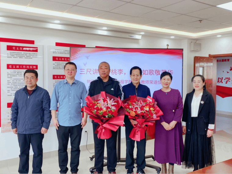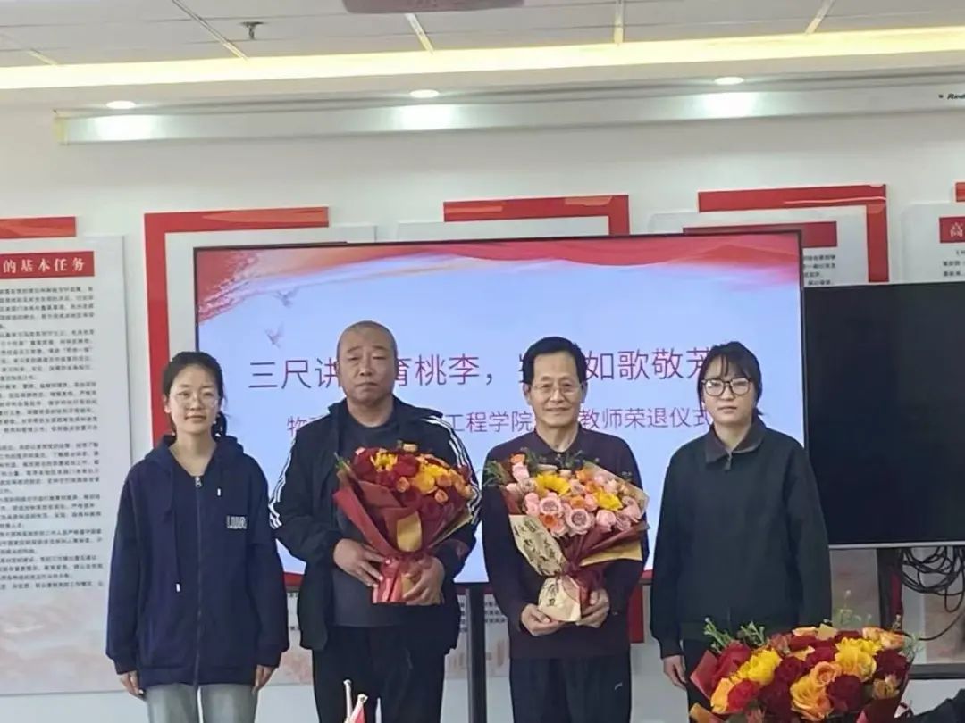 4月14日,物理与电子信息工程学院在逸夫楼809隆重举行退休教师荣退仪式,向光荣退休的教师致以崇高敬意和诚挚感谢。学校人事处王祯祺科长、离退休人员工作处巩立红科长、学院领导班子成员和教师代表以及学生代表齐聚一堂,共同见证这一温馨而难忘的时刻。