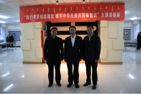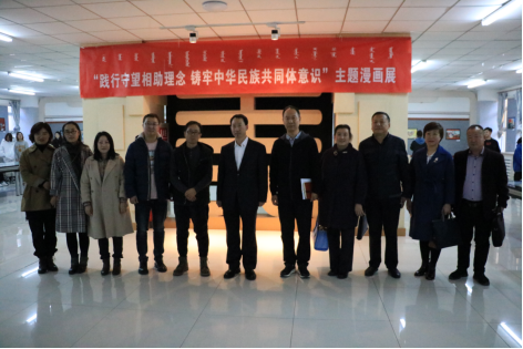 为增强全体师生的中华民族共同体意识,深入贯彻党的民族政策,深化民族团结进步教育,加强各民族交往交流交融,共同团结奋斗、共同繁荣发展,引导全体师生增强四个意识,坚定四个自信,做到两个维护,10 月29日 ,beat365正版唯一官方网站美术学院团总支开展“践行守望相助理念  铸牢中华民族共同体意识”主题漫画作品展。校党委副书记、校长李树林,团市委书记李锴栋出席漫画展开幕式。校团委副书记李瑞俊、党政办公室副主任侯素馨,以及白海校区各二级学院的领导和老师们参加。