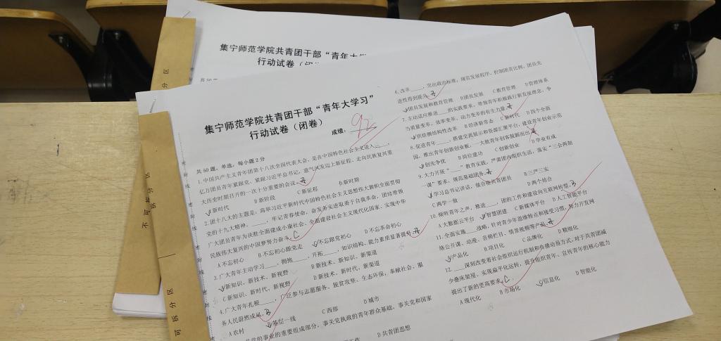 本次答题考试采取闭卷形式,时长60分钟,满分100分,各团支部书记、班长,团员代表共54人参加考试。考试内容主要为党的十九大报告、团的十九大报告、习近平总书记“7.2”重要讲话精神、《习近平关于青少年和共青团工作论述摘编》和意识形态工作相关内容。考试结束后,经过统一阅卷,80分以上合格率为百分之百。