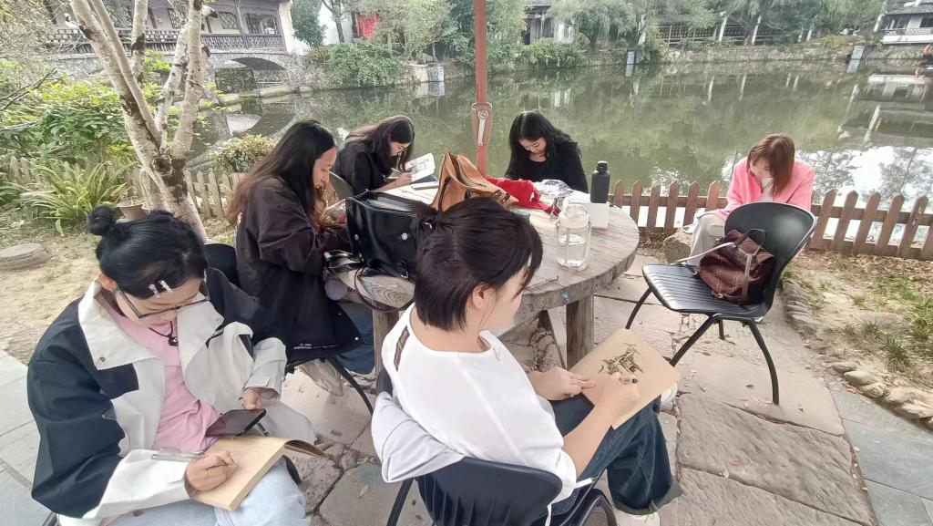 采风、写生、考察期间,同学们以独特的视角观察景点,领略着景物的静谧和质朴。挥动着手中的画笔,将树木葱郁,小桥流水,芭蕉绿草,绘于一幅幅画作之中。与花木对话,与山川河流对话,探寻笔墨表达,体悟内心独语,沉醉于创作的美感之中。写生过程中师生互动交流,将南北地域风貌、乡土人情绘作一幅幅多姿多彩的画卷留存记忆。美育的浸润是一种内化感悟,文化浸润,是审美品格提升的最佳方式。实践课程给学生创造了一个亲近自然的空间环境,欣赏美景、认知人文、体会生活、感悟人生,在实践浸润中陶冶身心,提升个人品德修养。