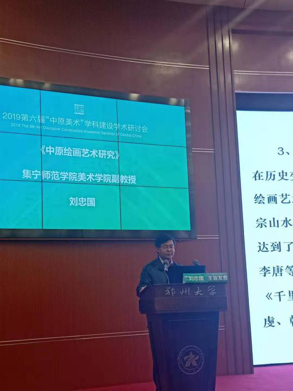 2019年11月30日—12月1日,美术学院教师刘忠国和王军一行,参加了由郑州大学等单位联合主办的2019第六届“中原美术”学科建设学术研讨会,与会者来自全国60多所高校的知名学者、艺术家和研究生等六百多人。刘忠国副教授以《中原绘画艺术研究》为题,在大会上做了精彩的演讲,从时间序列上梳理了历史上所出现的中原绘画艺术,分析了中原画风的缘起,总结了当代学者对中原画风的论述,勾勒了中原画风的历史传承与发展。该议题得到了与会专家教授的一致好评,为此,河南省艺术教育学会会长石品先生,还专门致谢其对河南美术事业的关注和对中原绘画艺术的研究。通过此次会议开阔了beat365官网教师的学术视野和眼界,也拓展了beat365官网与国内高大高校学术界的人脉,也很好地宣传了beat365官网的知名度。