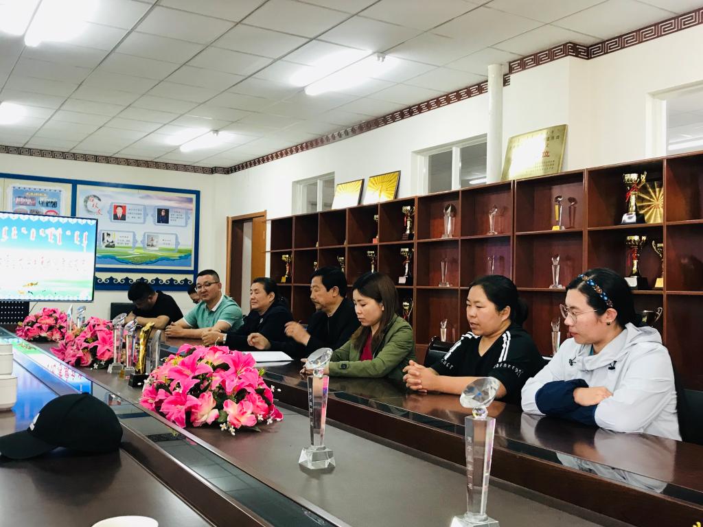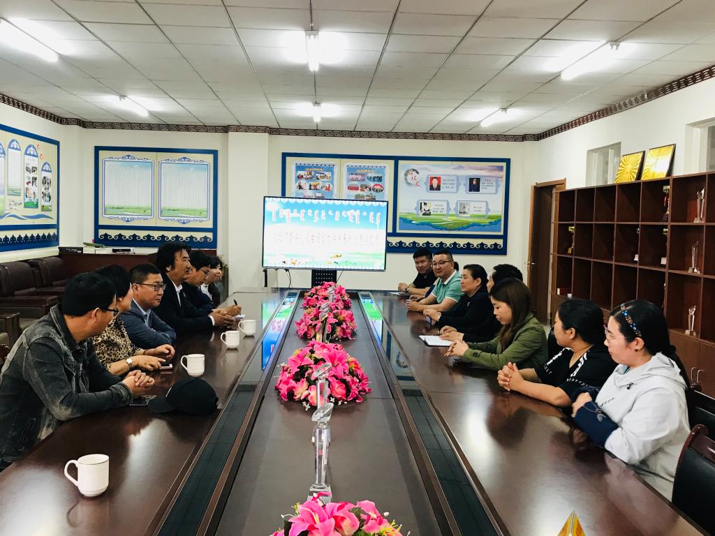 蒙古学学院党总支书记青龙代表学院热烈欢迎河套学院同仁来访,院长南斯力玛介绍了蒙古学学院近年来的发展情况及迎评促建等方面的经验及做法。敖特跟毕力格对我院的热情招待表示感谢,并介绍了河套学院蒙古语言文学系的概况。教务处副处长孟美英、蒙古学学院副院长呼和满都拉介绍了我院迎接本科教学工作合格评估的相关情况。蒙古学学院教研室主任、教学科科长、团总支书记、学工办主任参加会议。