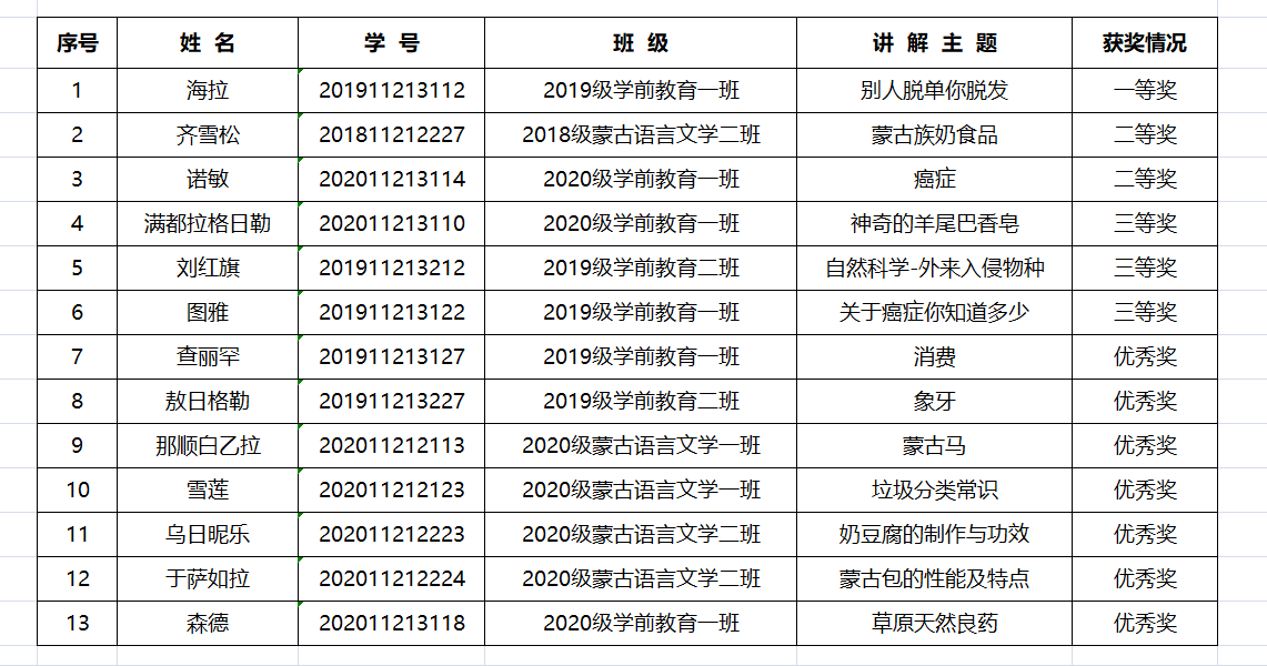 获奖学生名单如下: