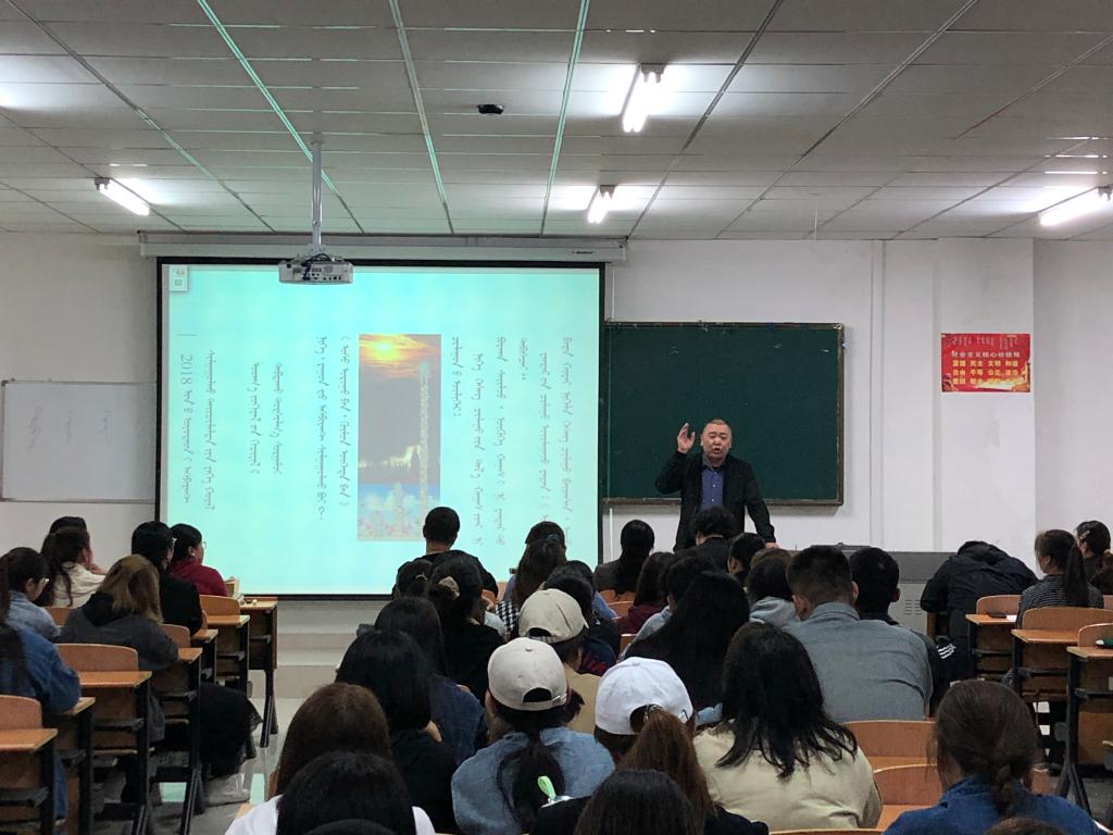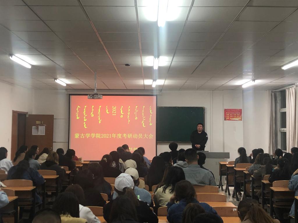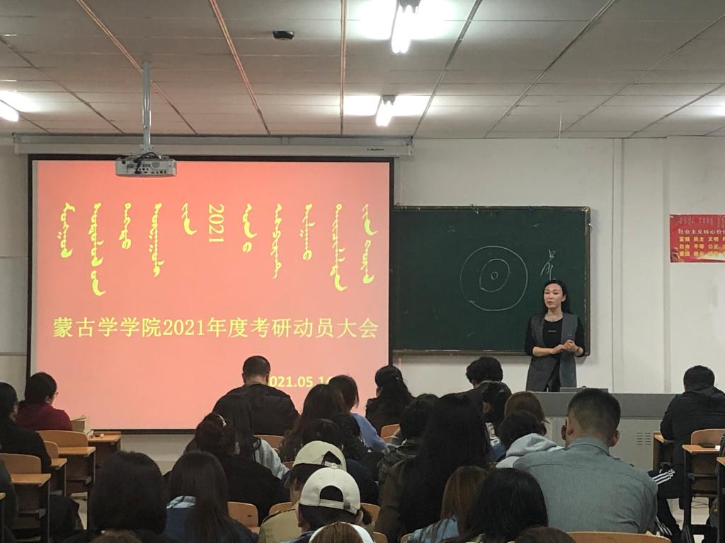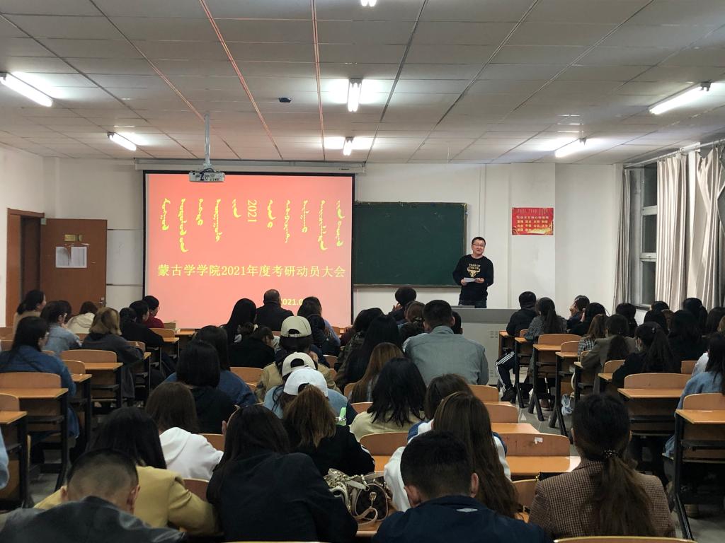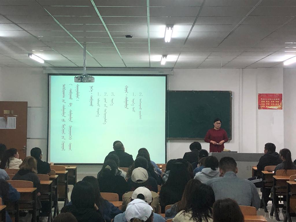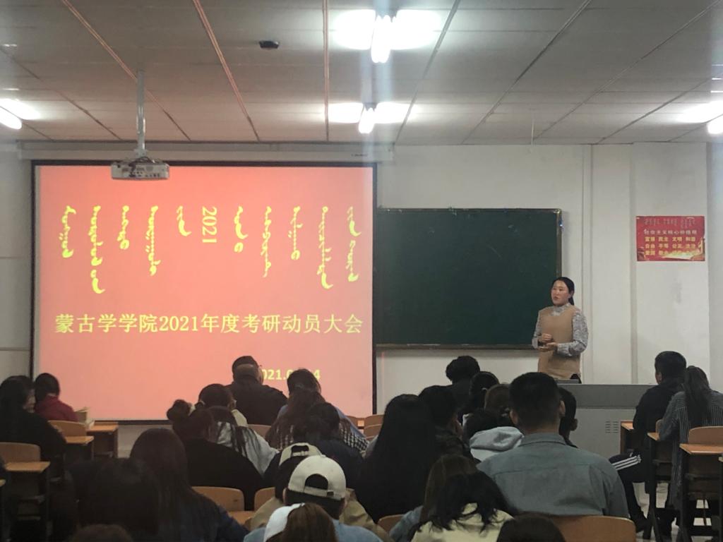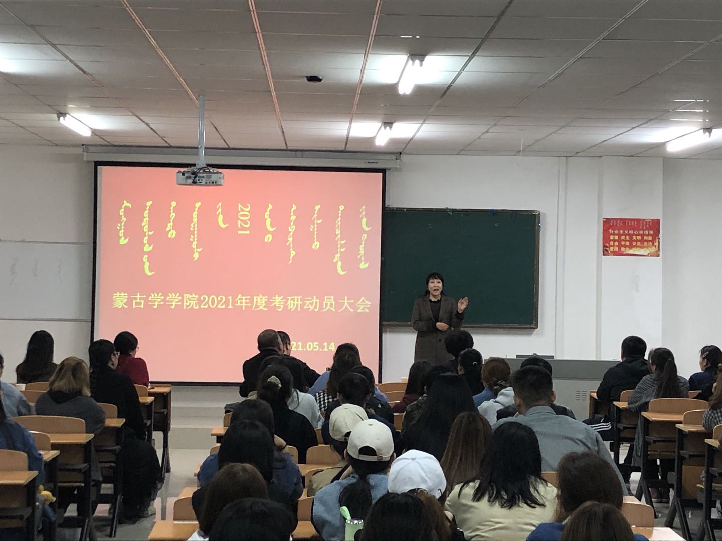 为进一步提升我院2018级学生考研热情,明晰考研目标、掌握择校及备考技巧,514,我院在白海校区蒙文楼311教室召开了2018级学生考研动员大会。学院副院长呼和满都拉语言教研室主任铁梅、文学教研室主任满都拉、教学科负责人英雄、国家级社科项目负责人胡红彦、蒙古国在读人类学博士查干、法学硕士晓荣、敖敦教育创始人敖敦2018级全体学生参加了本次会议。会议由英雄老师主持。