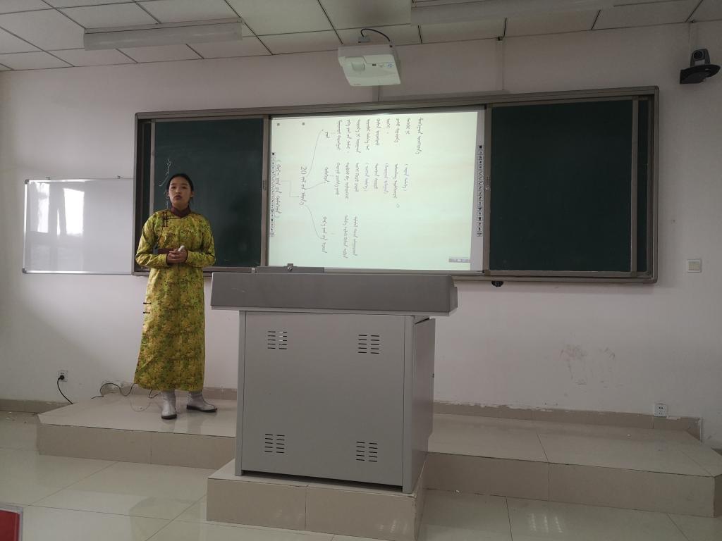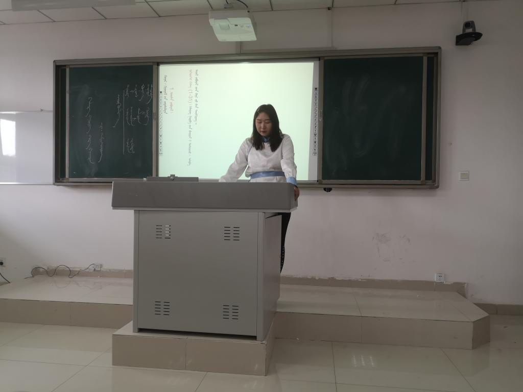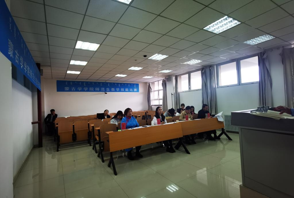活动参赛对象为蒙古学学院2018级、2019级蒙古语言文学专业学生,比赛形式采用讲课形式进行,比赛内容包含讲课、答辩共2个环节,满分共100分,参赛选手自选初中教材的相关章节授课。本次比赛评委由白秀梅、吴木其尔、胡红彦、铁梅老师担任,共有14名班级赛推荐上来的学生参加了院赛。